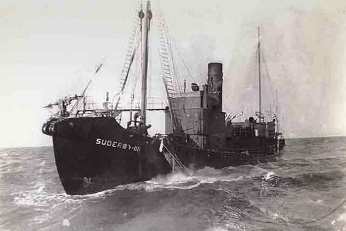 El Suderoy habia sido construido en 1910 y su nombre original era Klo. En el año 1914 lo compra una compañia llamada Pesca Baleira de Portugal y es rebautizado como John. Mas adelante, en el año 1926, cambia de dueño y pasa a llamarse Loanda. Por último, en 1929, es cuando se lo bautiza Suderoy, poco antes de quedar para siempre varado en la arena. Su cañón arponero, que puede apreciarse en una de las fotos, quedó visible hasta que cayó definitivamente en el año1991.
