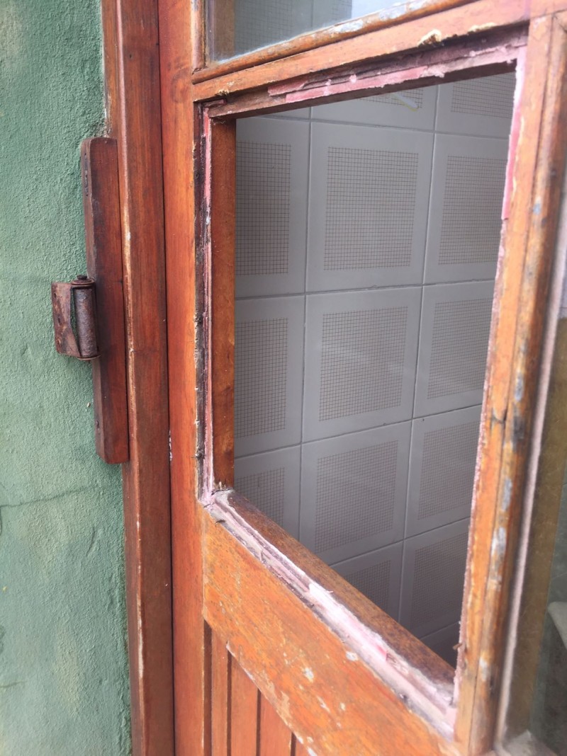 Los delincuentes salieron de la casa por el mismo vidrio roto de la puerta de la cocina que les sirvió para entrar.