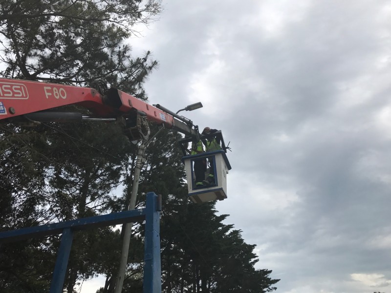 Dos cuadrillas trabajan en distintos puntos del Municipio de La Paloma, realizando el recambio de luces de sodio por iluminación LED. Las lámparas que están siendo cambiadas por dos cuadrillas de la empresa "Electroluz S.A." tienen mayor luminosidad y un gasto menor a las existentes.
