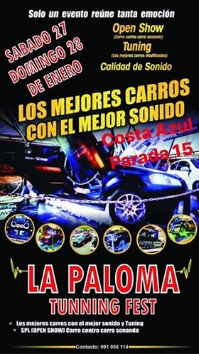 La Paloma Tunning Fest  se realizará el próximo 27 y 28 de enero en los Mirasoles de Costa Azul, ubicado en Del Barranco y Del Mar en la parada 15. La entrada tendrá un costo de 100 pesos por persona.
