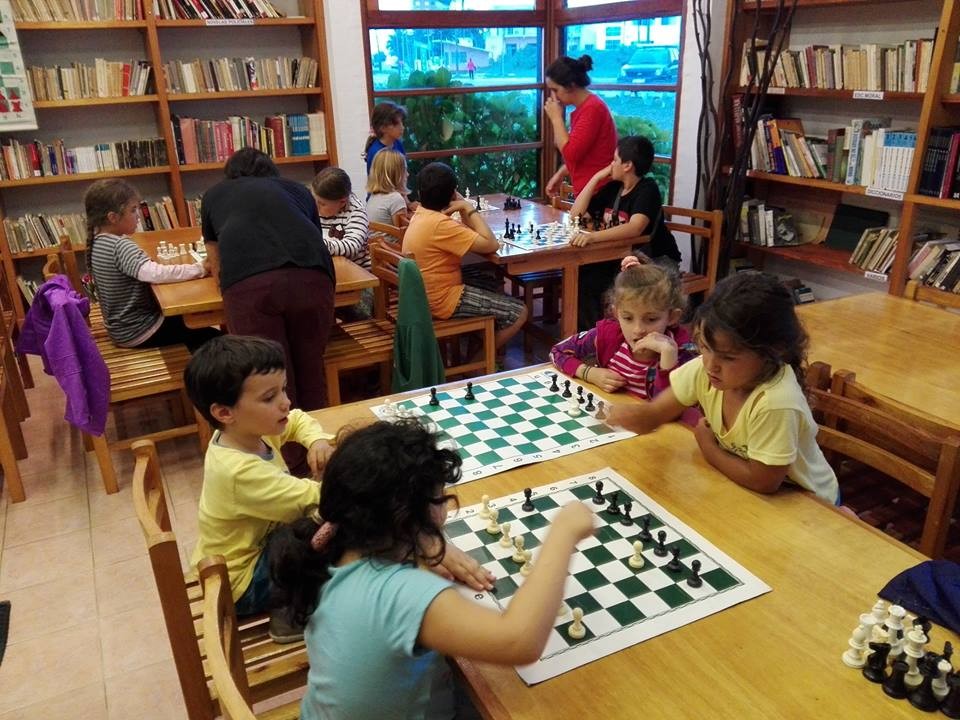 Aunque lleva poco tiempo en el Centro Cultural, cerca de treinta niños, jóvenes y adultos, divididos en distintos grupos, se dan cita frente al tablero bicolor.