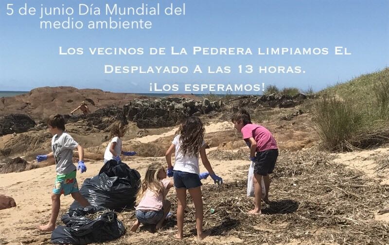 El 5 de junio se conmemora el Día Mundial del Medio Ambiente. Este año, la ONU propone el lema "Sin Contaminación Por Plástico", "Si no puedes reusarlo, rehúsalo". Además, se organizan jornadas de limpieza de playas en distintas partes del mundo. En Rocha, vecinos de La Pedrera cambiaron la fecha debido al clima, por lo que convocan a los que quieran participar a reunirse el viernes 8 de junio a las 13 horas en la bajada del Desplayado, y llevar bolsas y guantes para realizar la limpieza.