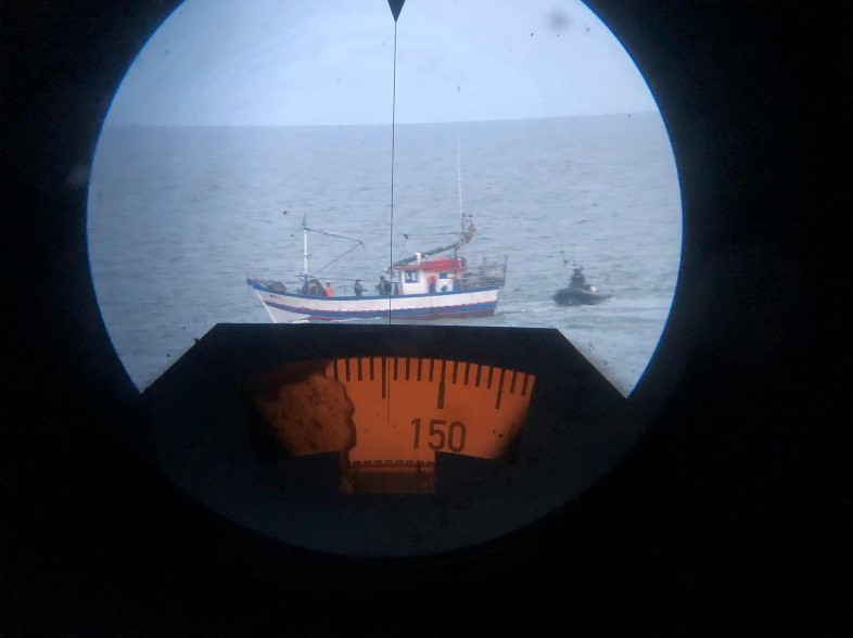 De inmediato, se destacaron 2 embarcaciones del Comando de Infantería de Marina (COMIM) para realizar la inspección correspondiente; constatándose que aún tenía las artes de pesca en el agua. Ante esta situación, se procedió a dar la orden de detención de máquinas, pero el pesquero hizo caso omiso; manteniendo su rumbo en dirección al límite con Brasil.