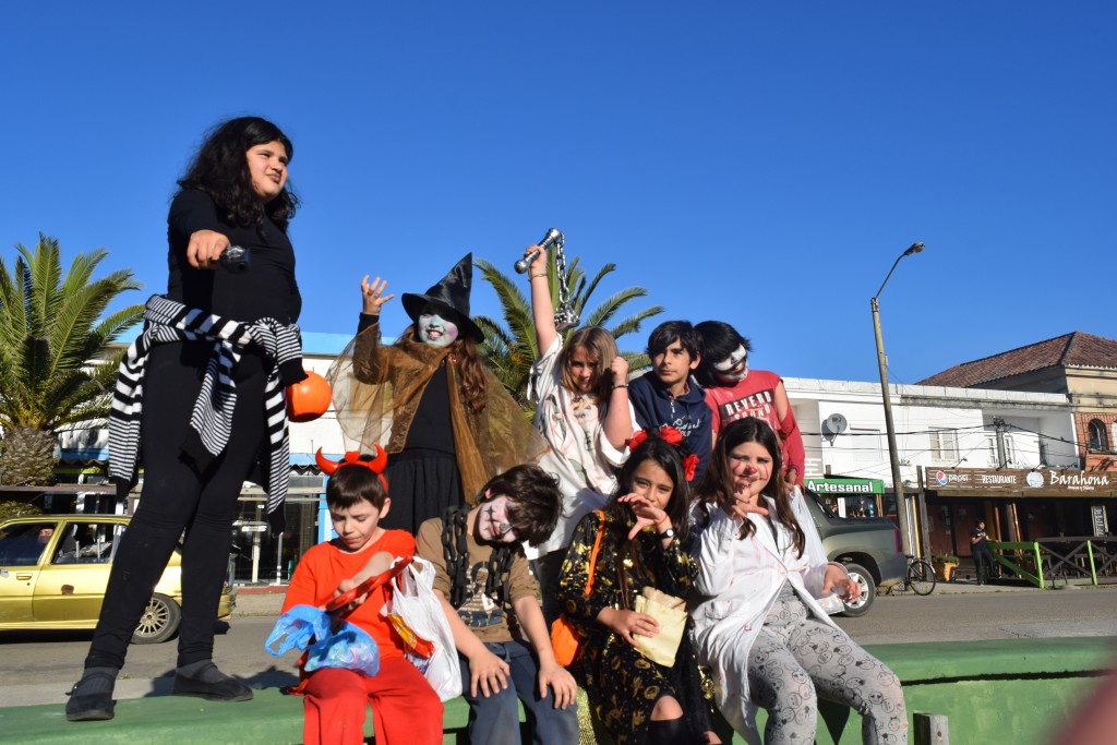 Una vez más, el centro de La Paloma se llenó de brujas, zombies, fantasmas, gente con la cabeza atravesada por un cuchillo y demás disfraces. Halloween, esa fiesta prestada que tanto disfrutan los niños palomenses, copó las principales arterias de la Ciudad con decenas de niños y padres recorriendo los comercios en busca del bien más preciado: una golosina. Algunos comerciantes ofrecieron caramelos, otros, como el restaurante Lo de Edinson, esperó a los disfrazados con galletas con decoración alusiva a la fecha, o la biscochería Chino y Nacho, que con bizcochos recién horneados, se ganó los aplausos de la tarde. Como no podía faltar, a las 18 horas en punto, el kiosco Lo de Pocho, ubicado frente a la Escuela 52 de La Paloma, fue el punto de reunión indiscutido para esperar el ansiado regalo, esta vez, se trató de una chocolatada.