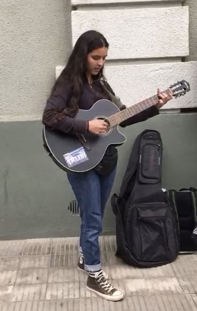 Brisa estuvo acompañada por Pablo, su padre, y Carlota, una amiga. Llegaron antes de las 8 de la maána y había solo dos personas delante de ella. Ashta ese momento estaba tranquila, pero los minutos pasaban y comenzaba a vivir nuevas sensaciones:  “los nervios empezaron cuando tuve que subir al primer piso a hacer la prueba “ahí estaba sola con mi guitarra, pero el hombre que nos acompañaba a mí y a otro participante nos tranquilizó y nos dijo que nadie nos iba a juzgar por cómo actuábamos, si cantábamos desafinado o si tocábamos bien o mal… entonces ahí me tranquilicé un poco”.