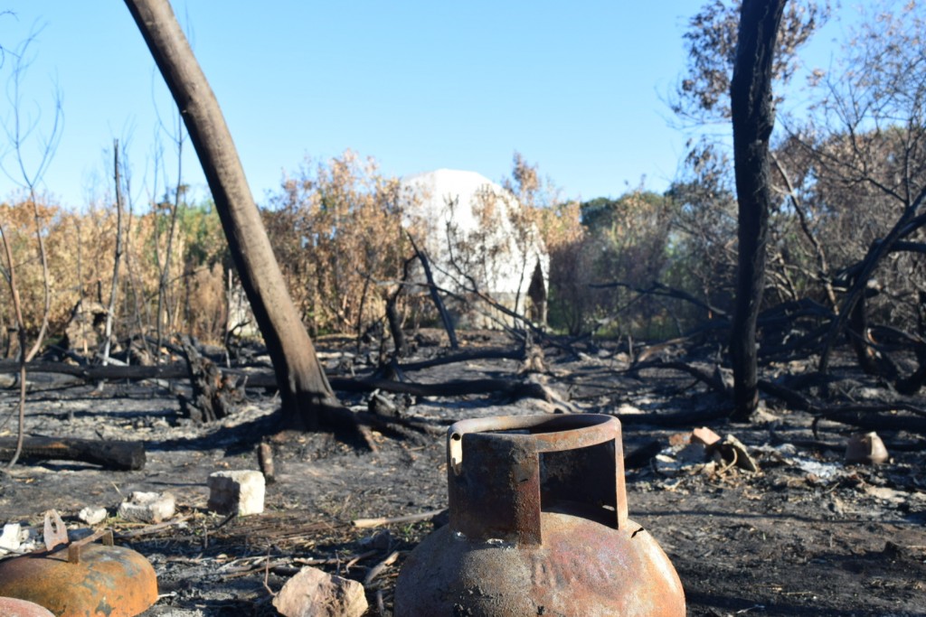 El olor que dejó el incendio del martes 10 de diciembre se hace sentir, y la brisa marina sacude la resina de los pinos que sobrevivieron, contrarrestando la sensación de desolación que persiste en el lugar.