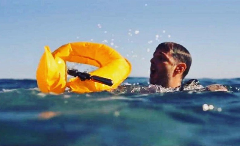Lamentablemente no creo que sirva para mucho, si el guardavidas entra al agua en busca de la víctima y éste elemento toca el agua se va a activar retrasando su llegada hasta la víctima. Si lo lanza hacia ella, puede no alcanzarla o también golpearla con éste elemento. Serviría más para embarcaciones.