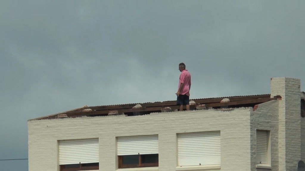 Según Perdomo, la tromba ingresó por la zona del faro y salió por La Aguada “tiró techos de chapa en La Paloma Vieja y el mayor destrozo se dio donde están haciendo la rotonda de ingreso al puerto, en las casas del MTOP, done tiró muchos árboles. Por suerte no hay gente lesionada”, subrayó