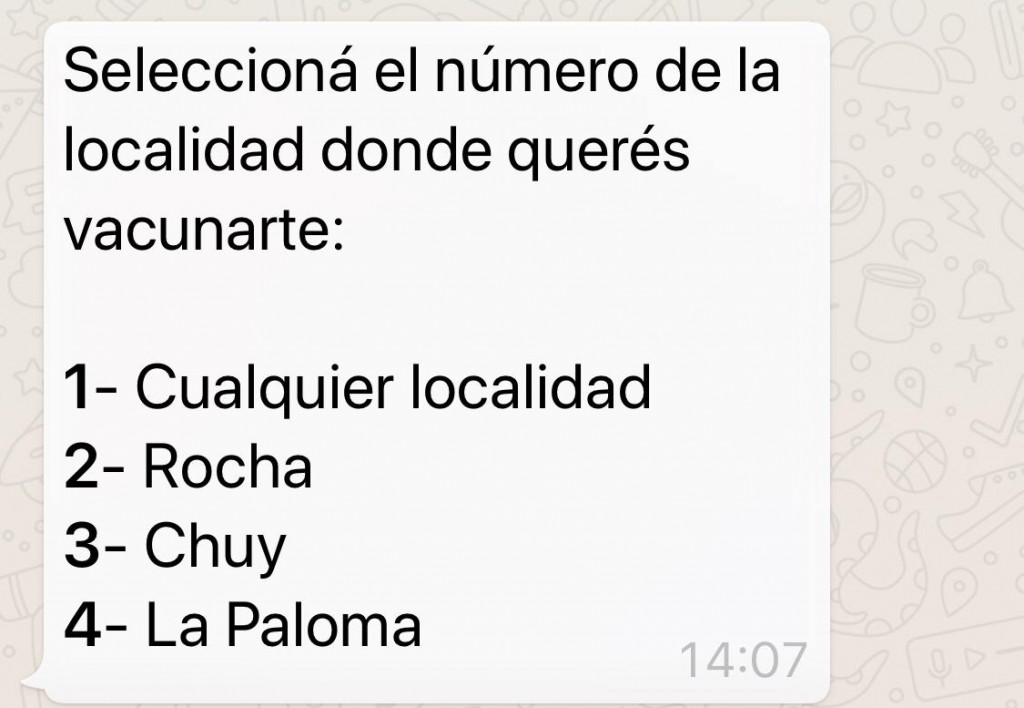 Desde las 14:30 horas aproximadamente, el sistema de agenda para vacunarse contra el COVID-19 en el Departsamento de Rocha, da como opción La Paloma.