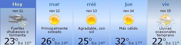 Si bien es muy pronto para hablar del fin de semana del 16 y 17 de noviembre, en principio podríamos decir que va aestar soleado y con temperaturas agradables.