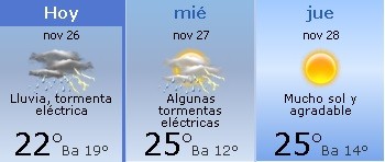 El miércoles algunas tormentas eléctricas temprano, luego no se descarta la probabilidad de un chaparrón. Lluvias y lloviznas ocasionales al anochecer; claro y más fresco. Mínima de 12º y máxima de 25º.