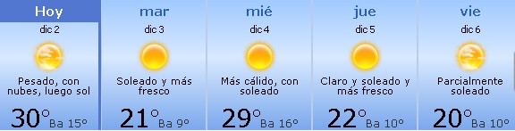 Noche: Fuerte tormenta eléctrica en determinados lugares; nubosidad variable. Mínima de 15º y máxima de 30º.